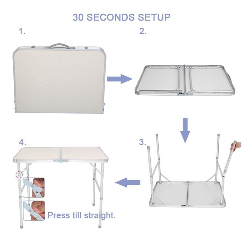 Designed for ultimate portability and versatility, this aluminum picnic table is ideal for camping trips, beach outings, travel, and parties.