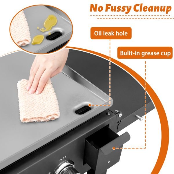 5. Effortless Cleaning: Our griddle station boasts easy-clean design with an oil drip hole and a slide-out grease cup, ensuring you spend less time cleaning and more time enjoying your culinary creations.