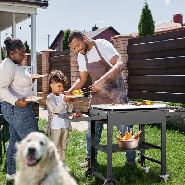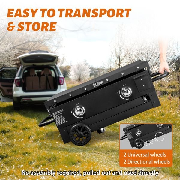 1. Ultimate Portability: Our griddle station can be easily folded into a compact, mobile trolley for effortless relocation, perfect for outdoor enthusiasts on the move.