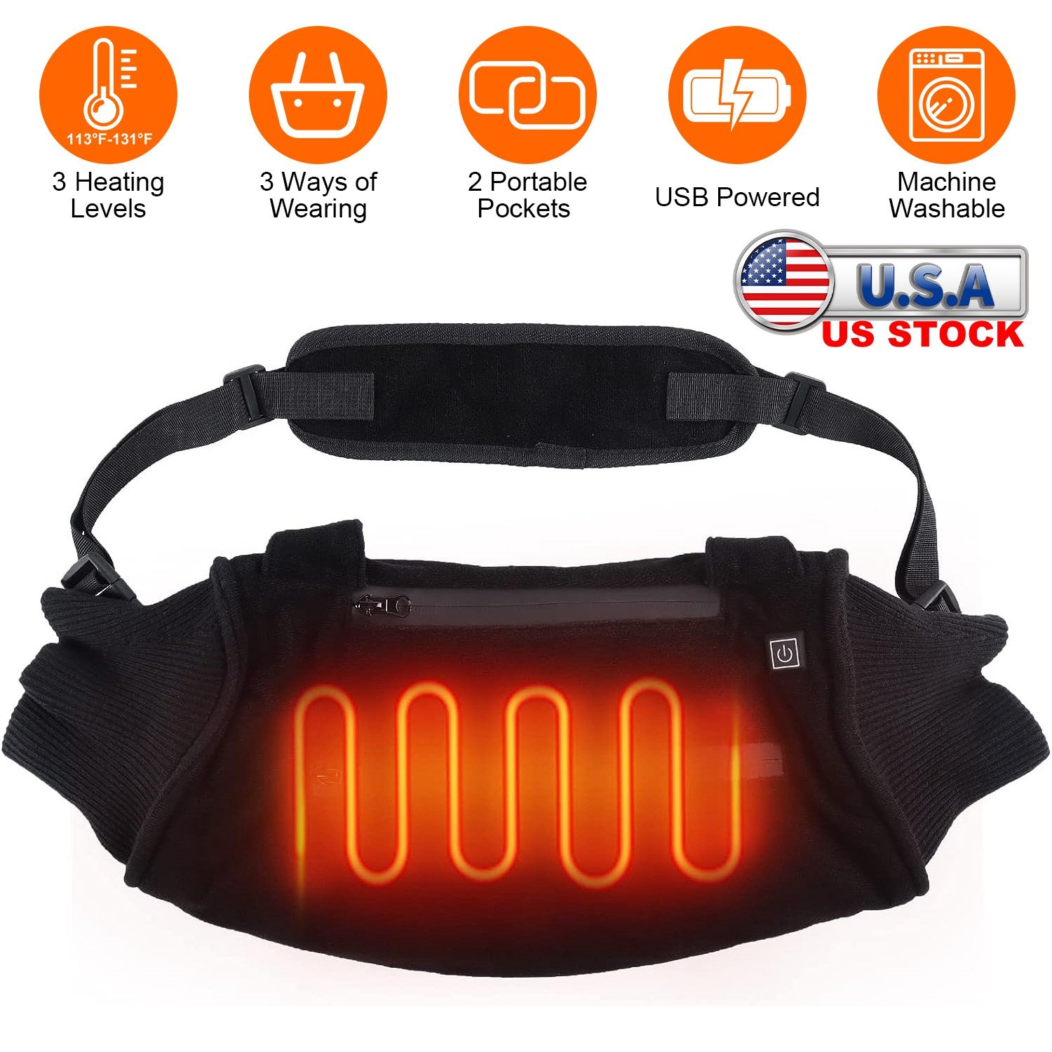 Have your feel chilly of your hand as winter approaches? Try our electric heated hand waemer for men and women! Made of super soft wool, comfortable and cozy in winter. Embedded with 4 heating pads and featured with 3 heating levels (122-131℉/113-122℉/104-113℉), our heated hand muff help focus heat to keep your hands from getting cold and offer adjustable temperature suit your warming need indoors and outdoors. One button control provides much convenience for operation. USB powered and machine washable. The 2 pockets enable you to carry your power bank and phone anywhere. The adjustable waistband makes it fit for most waist(27.2-49.2in). The 4 inbuilt buckles enable you to tie our hand warmer pouch around your waist, hang it on your neck or shoulder. Suitable for both indoors and outdoors. Thoughtful gift for family, friends, lovers and colleagues.