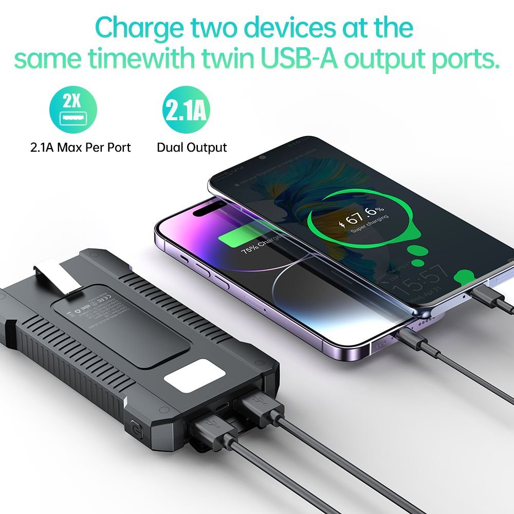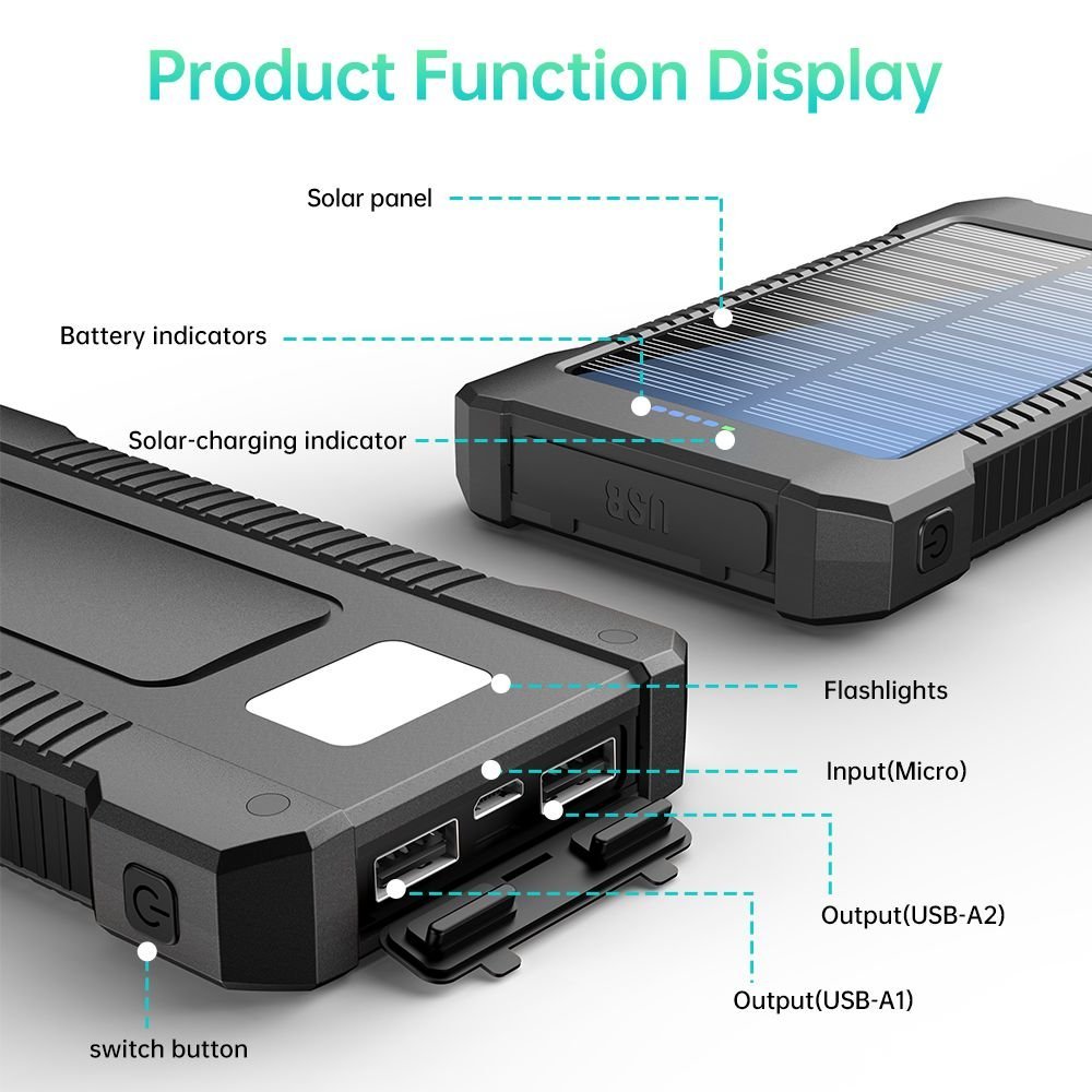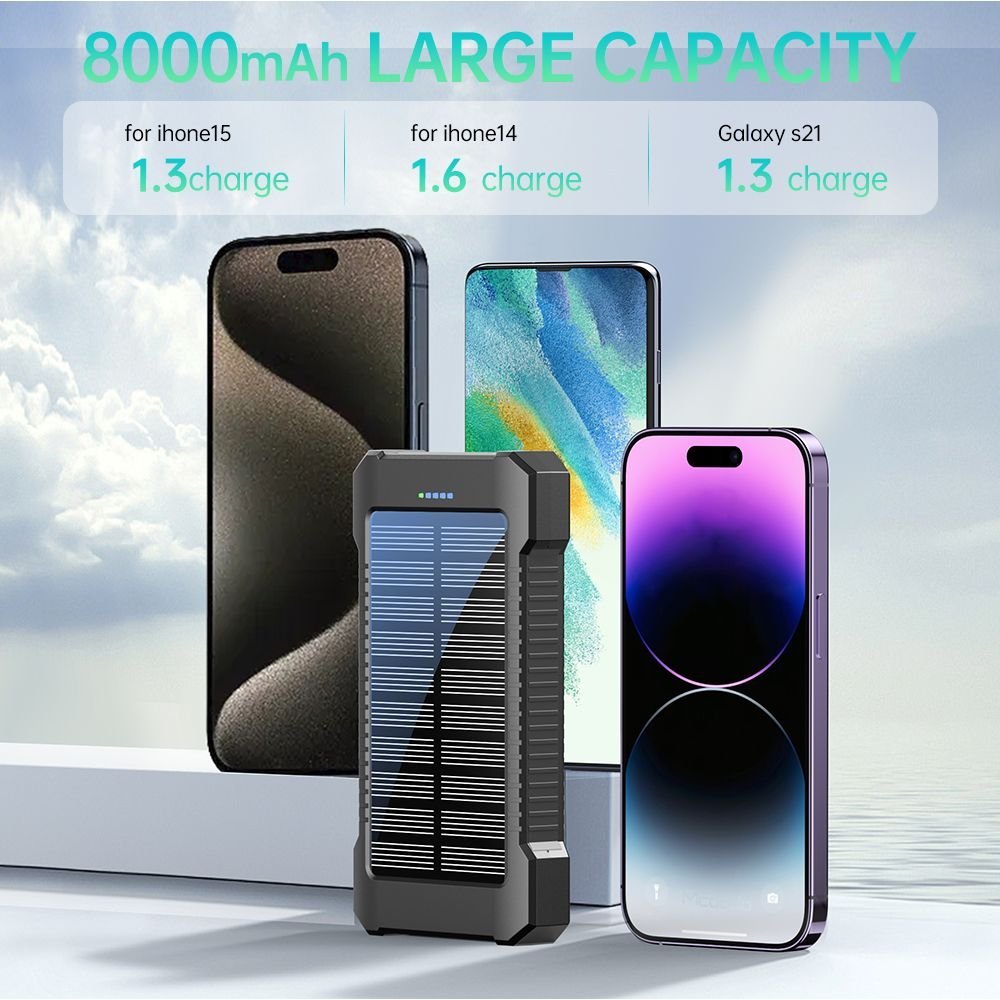 1.Solar-Powered Portable Charger With Built-In Light, Featuring An 8000mAh High-Capacity Battery Pack, Capable Of Solar Charging And Illumination, Compatible With IPhone, Samsung, IPad Mini, And Various Other Devices.