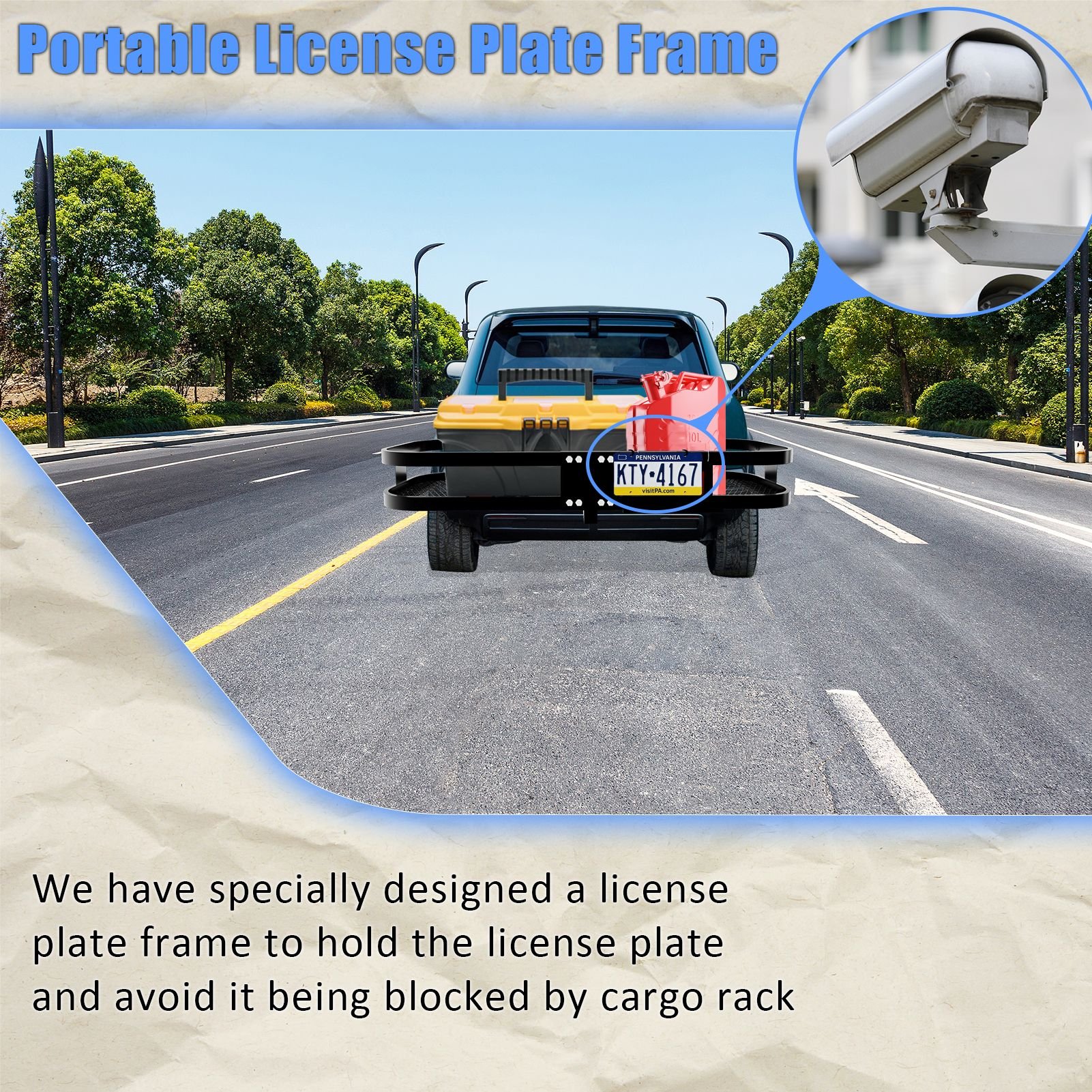 2.Larger Capacity:The tow hitch storage rack adds about 10 ft²of storage space to your vehicle,which could fit all the essentials you need for a road trip or camping.Cargo hitch carrier’s size is available in 6"or 14.4" heights.The hitch rack's guardrail also makes sure the safety of luggage