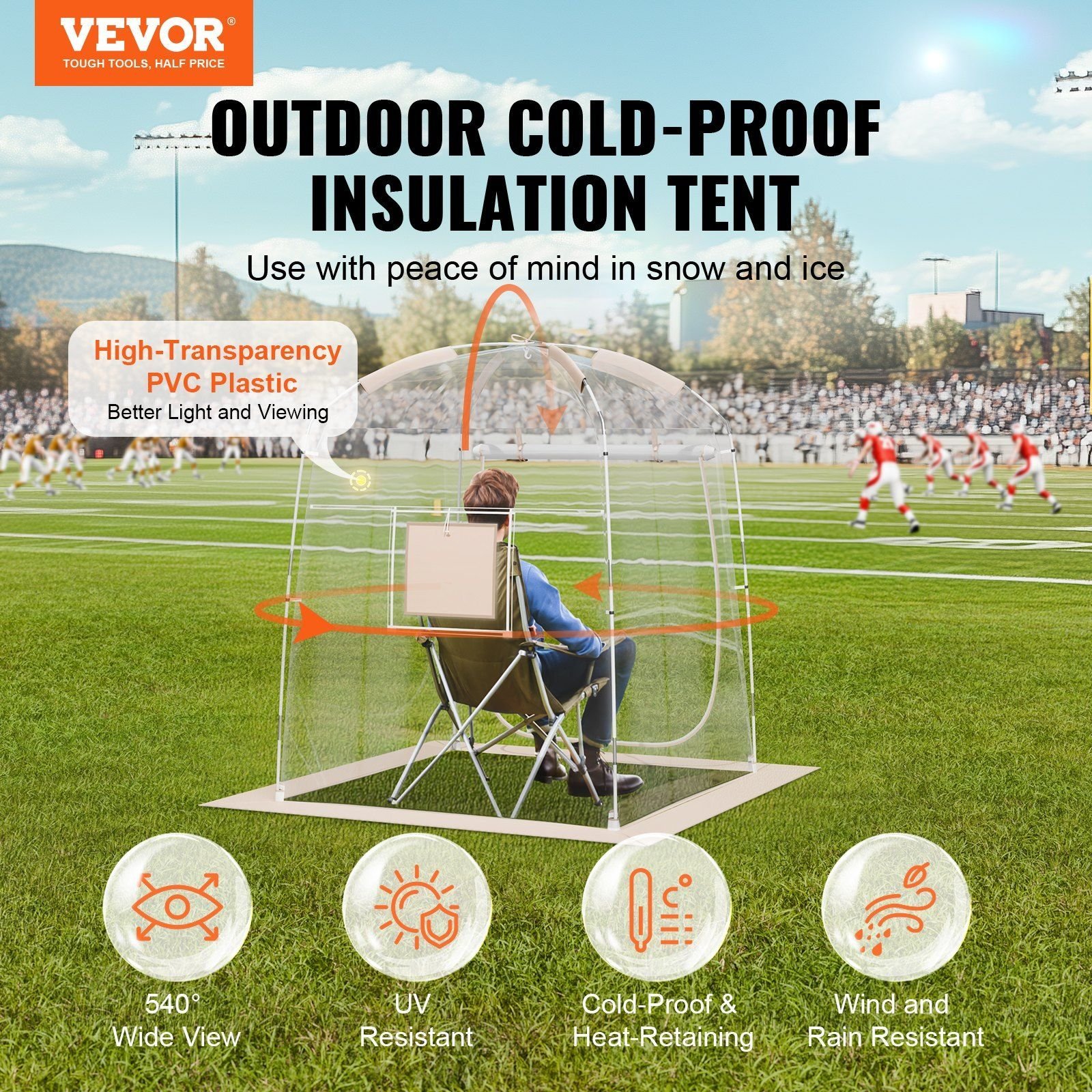 1.50" x 50" Waterproof & Cold-Resistant Tent: Our sports tent is made with cold-resistant PVC plastic, designed to keep you cozy while providing a crystal-clear view. Thanks to its tear-proof material and heat-sealed seams, no need to worry about leaks-even in snowy conditions. With a roomy four-sided design and a window, you'll have plenty of space to enjoy the outdoors.